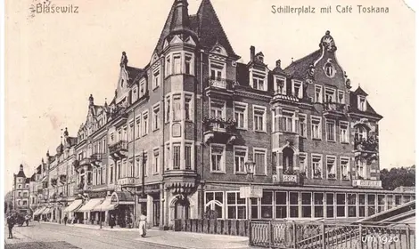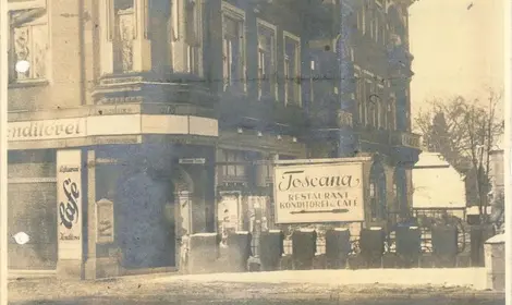 zu interessieren. Genau gegenüber am Schillerplatz 7 richtete der aus dem Thüringischen stammende Gastwirtssohn ein Café ein, nannte es jedoch vorerst schlicht „Kaffeerösterei mit Kaffeeausschank“. Die Brücke als neue Attraktion und viele ehemalige Stammgäste des Schillergartens verhalfen Louis Köhler zu einem schnellen Aufschwung. Im Jahre 1901 tauchte das Kaffeehaus erstmals als „Café Toscana“ auf. Die einstige Erzherzogin von Österreich und Gattin des Sächsischen Kronprinzen Friedrich August III. von Sachsen, Luise Antonia Maria Theresia Josepha Johanna Leopoldine Karolina Ferdinande Alice Ernestina von Österreich-Toscana, war damals Stammgast des Cafés. Es ist also gut vorstellbar, dass er sein Café etwas provokativ nach ihr benannte. Denn sie war gewiss keine gewöhnliche Herzogin.